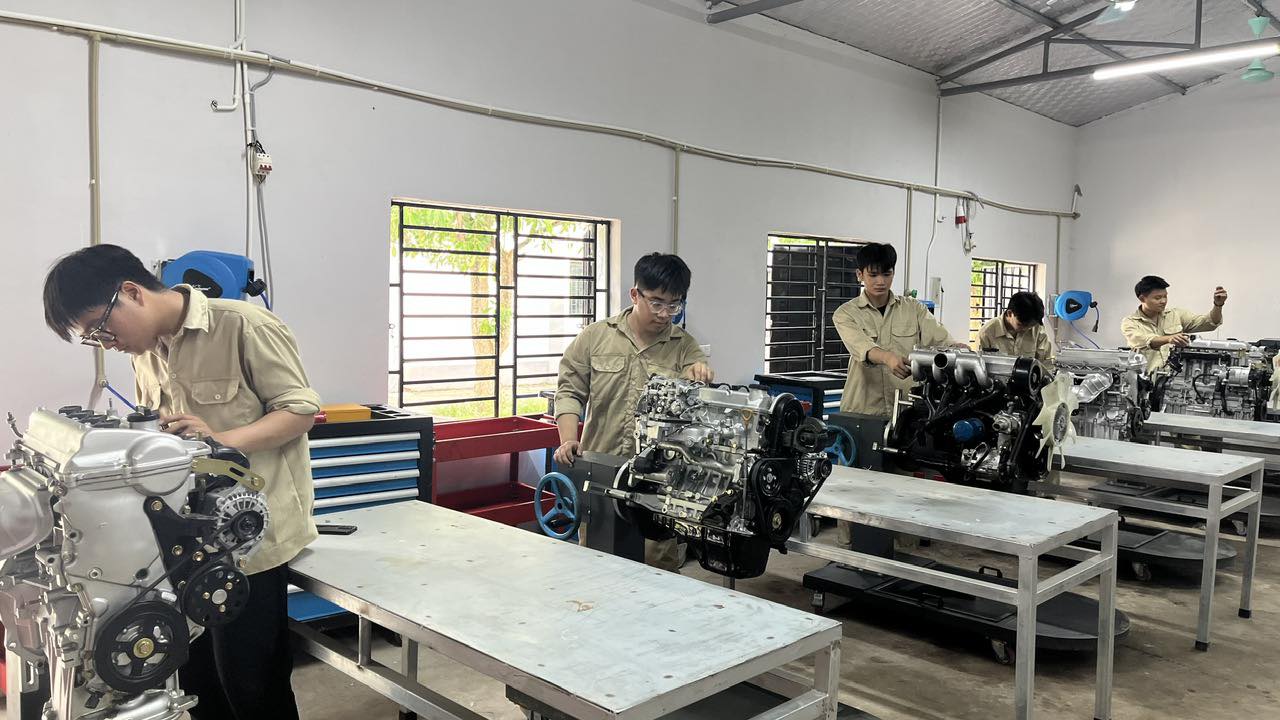Sinh viên ngành Ô tô trường Cao đẳng Hữu Nghị trong giờ thực hành