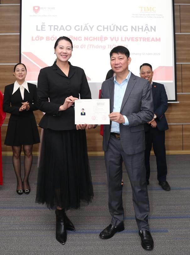 Sáng ngày 05/12, Trường Cao đẳng Hữu Nghị phối hợp với Trung tâm Đo kiểm Phát thanh Truyền hình và Thông tin điện tử tổ chức lễ trao Giấy chứng nhận hoàn thành lớp bồi dưỡng nghiệp vụ livestream khóa 1.